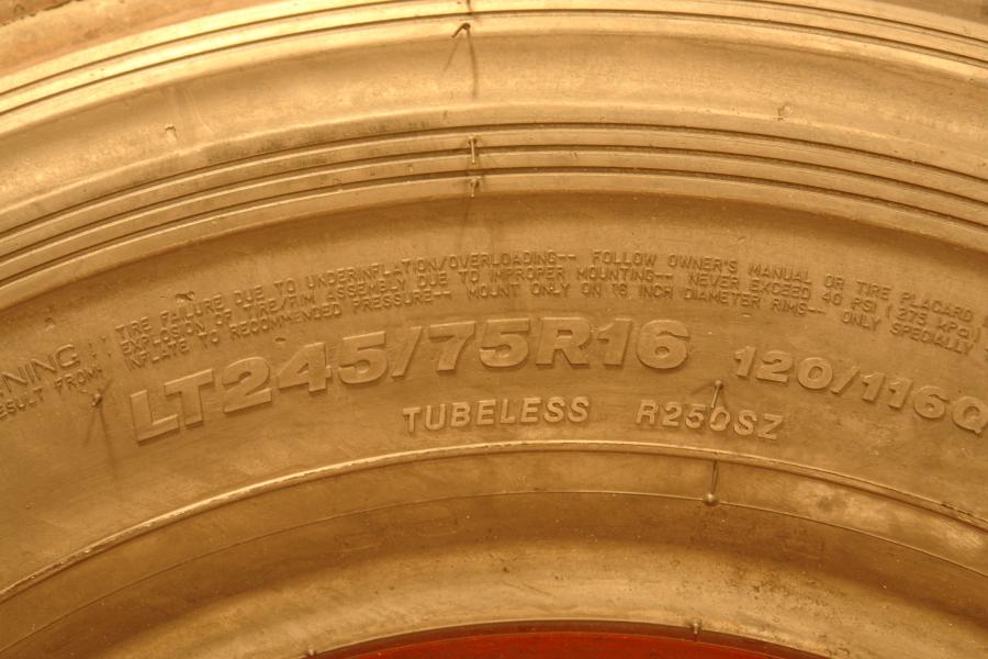 2 used tires LT 245/75/16 BRIDGESTONE DURAVIS R250. Price of 2 brand new tires is $460. Has 99% tread left. FREE INSTALLATION (includes new valve stem, mounting, balancing and tire disposal). Includes 90 days warranty (exchange or money back).